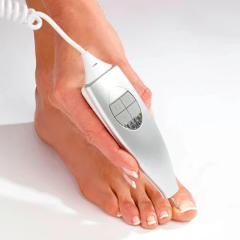Professionelles Gerät zur Fuß- und Nagelpflege. Mit Kaltlichtstrahler. Für noch präziseres und genaueres Arbeiten. Alle Maniküre und Pedikürarbeiten werden schnell und mühelos erledigt. Komfortable, staubgeschützte Softtouch-Bedientasten regeln den Rechts-/Linkslauf und die Schleifkraft bis zu 12.000 U/min. Intensitätsanzeige über 5-stufigen LED´s, im praktischen Aufbewahrungs-Etui, inklusive 42-teiligem Zubehör.